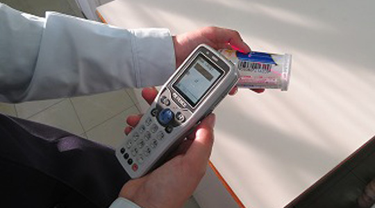 お客さまのお届けに関する情報は、携帯端末機(バーコードリーダー)を使用して売り上げ・在庫・顧客管理などを行います。
